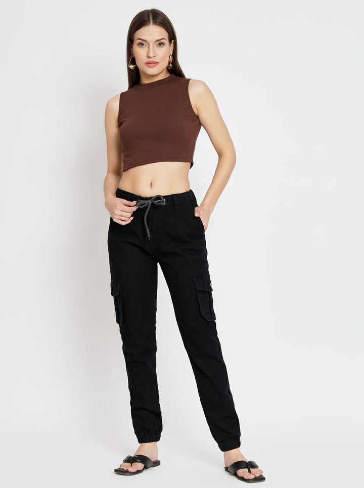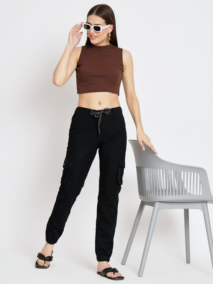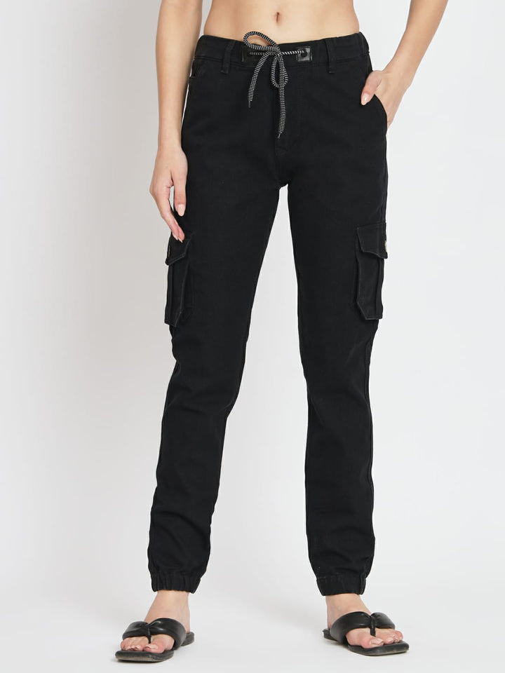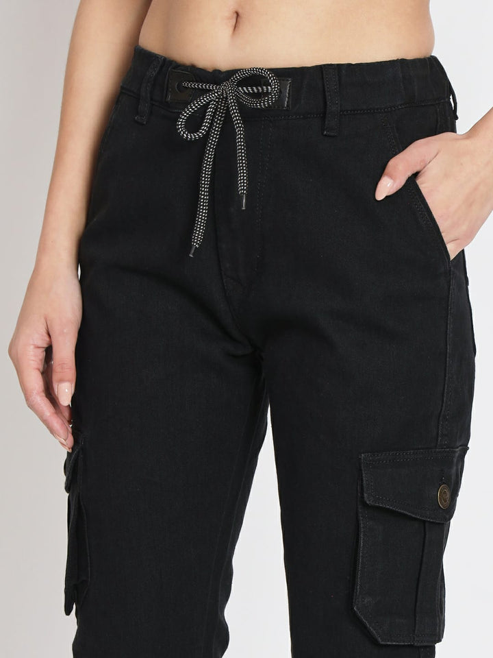 WOMEN CARGO BLACK JOGGER JEANS