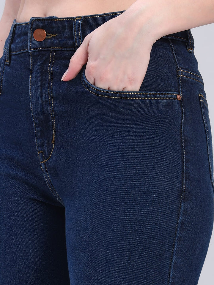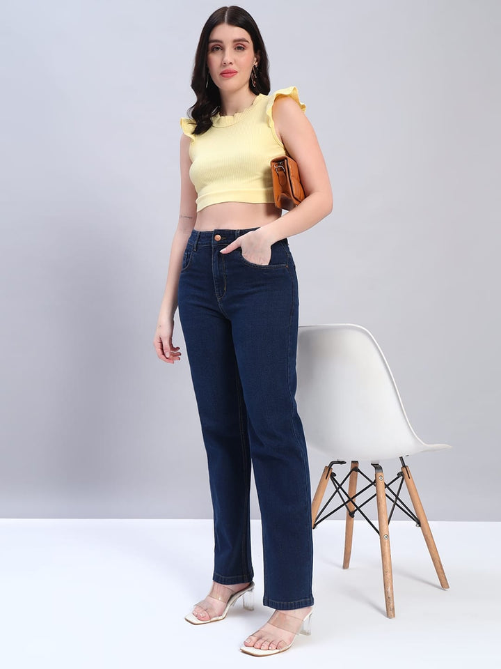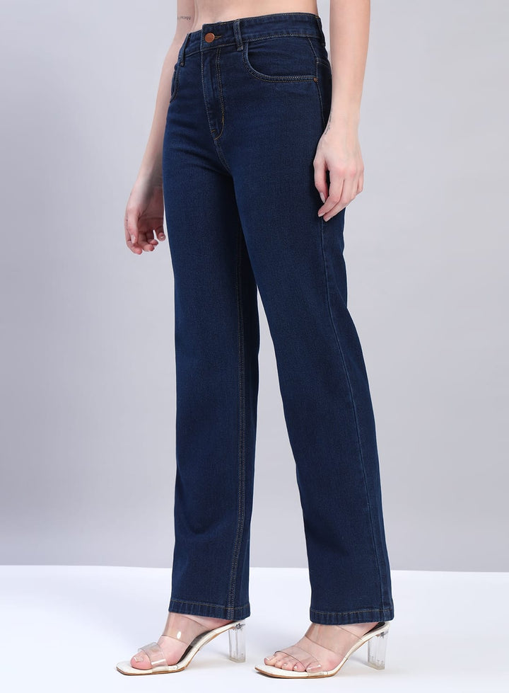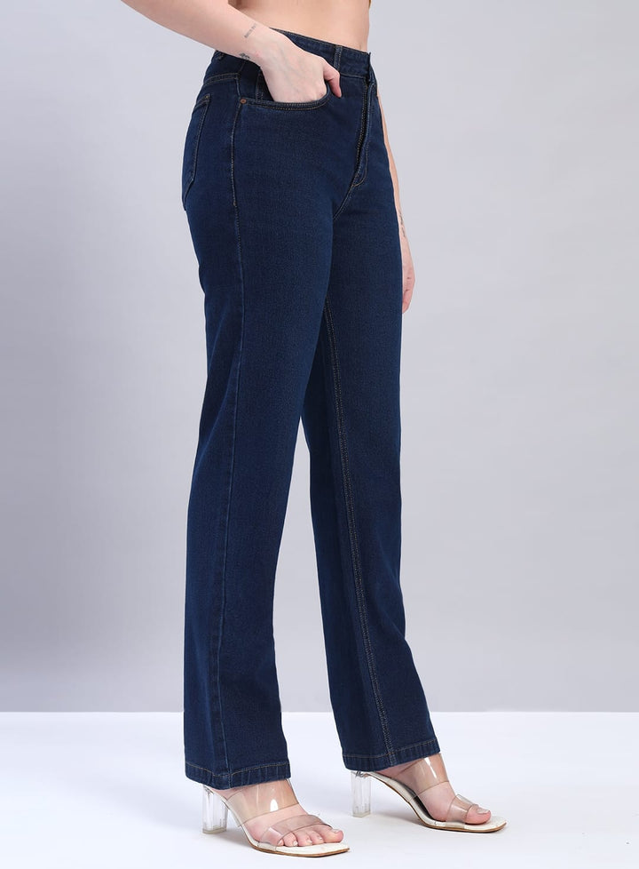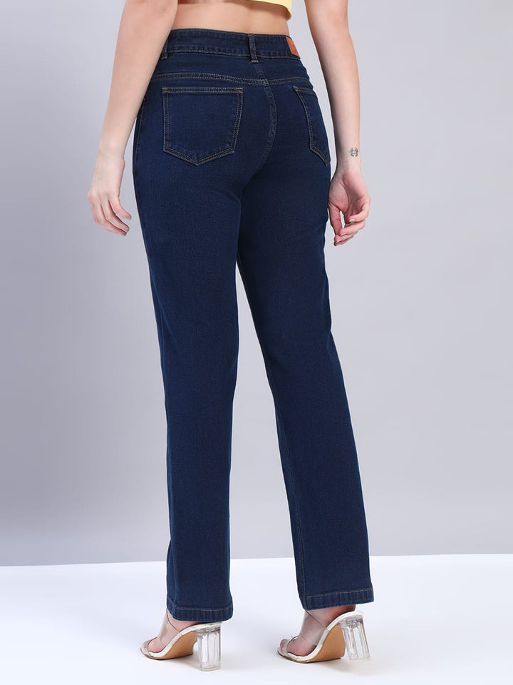 Women Comfort Straight Fit High-Rise Dark Shade Stretchable Jeans